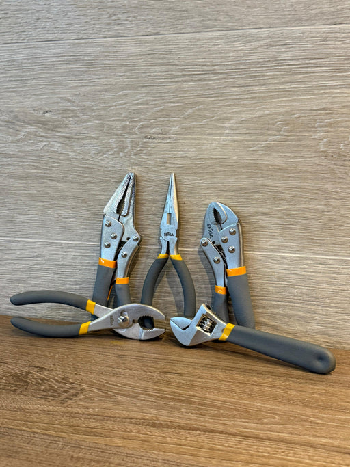 Jogo de Ferramentas com 04pcs. Contém: - Alicate de corte 6" - Alicate Universal 8" - Alicate de bico 6" - Alicate de bico 8"