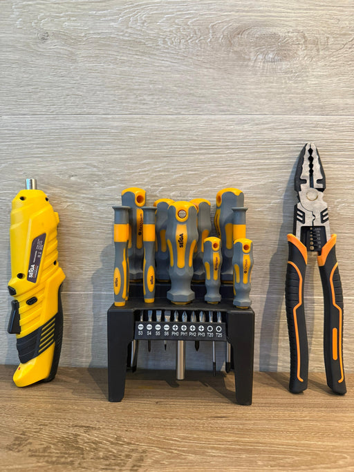 Kit Parafusadeira 3.6V + Alicate Multiuso 10" + Jogo de Chave de Fenda 21 pcs Este kit é ideal para quem busca praticidade e eficiência em reparos ...