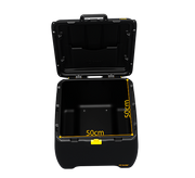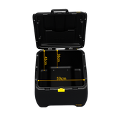 Além do design diferenciado, é possível personalizar o baú com a logomarca de sua empresa por meio de adesivos ou outras técnicas conhecidas no mercado. Um dos itens especiais desta linha de 140 litros, além da tampa com parede dupla, na parte interna há um compartimento para carregar documentos com total segurança, sem risco de amassá-los e danificá-los