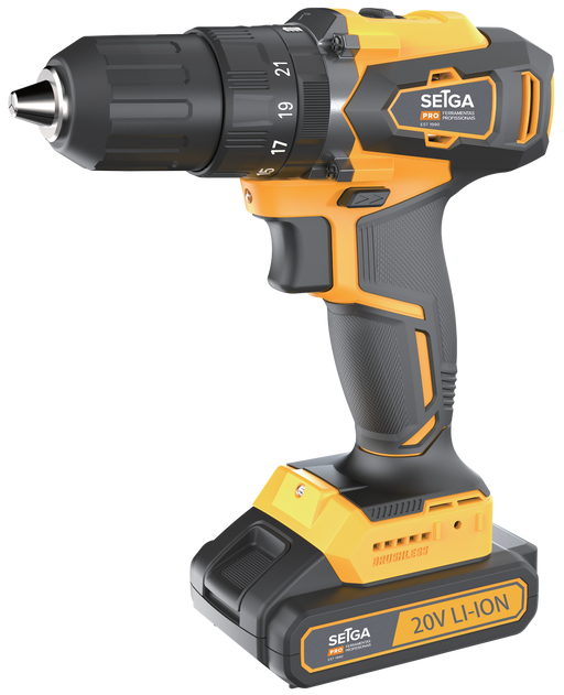 Furadeira/parafusadeira com impacto 20v e 21 torques Motor brushless ou seja sem escovas de carvão. Este motor oferece maior eficiência, durabilida...